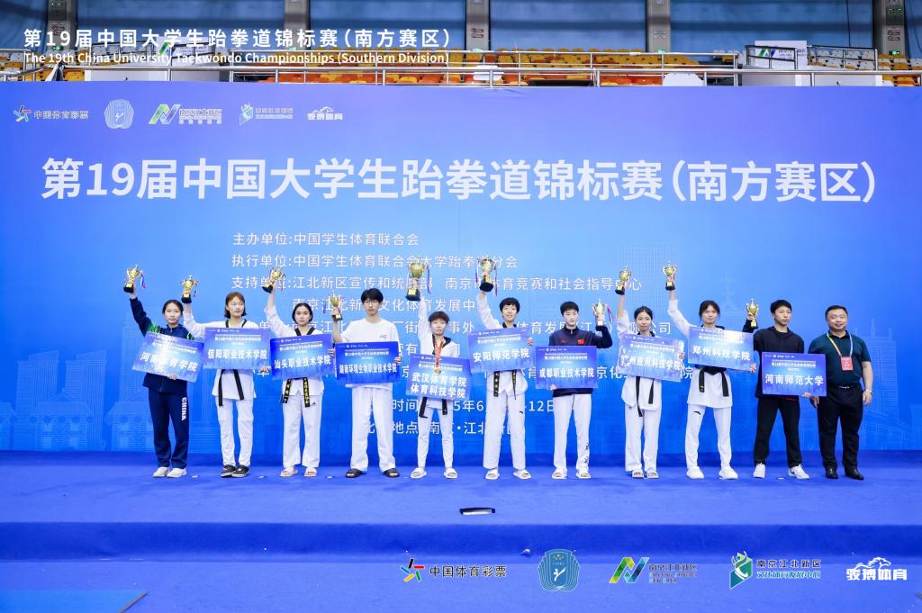 6月8日-6月12日,第19届中国大学生跆拳道锦标赛(南方赛区)在南京江北大厂体育馆举办。我校跆拳道队共10名运动员参赛,荣获2枚金牌、2枚银牌、1枚铜牌和2个第四名、1个第五名、1个第六名,女子丙B组(体育专业组)个人竞技总分第二名。