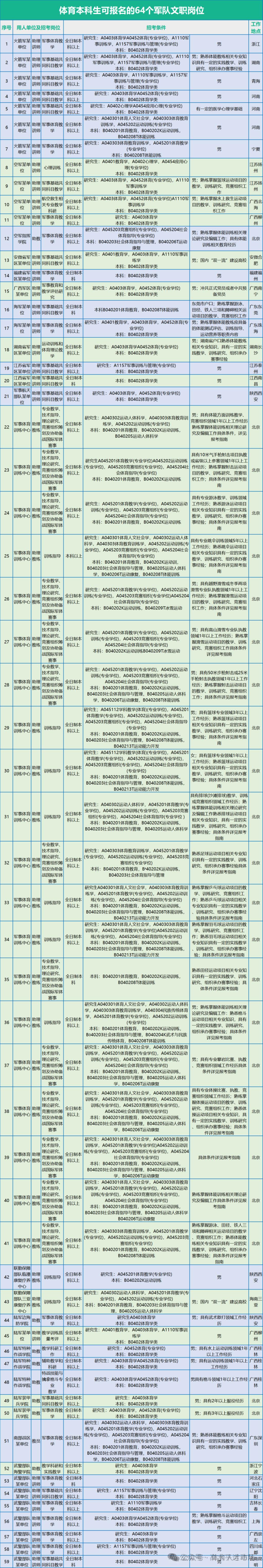 可报考岗位集中在两大体系,具体岗位以助理教练、助理讲师为主:各军区所属单位;军事体育训练中心。