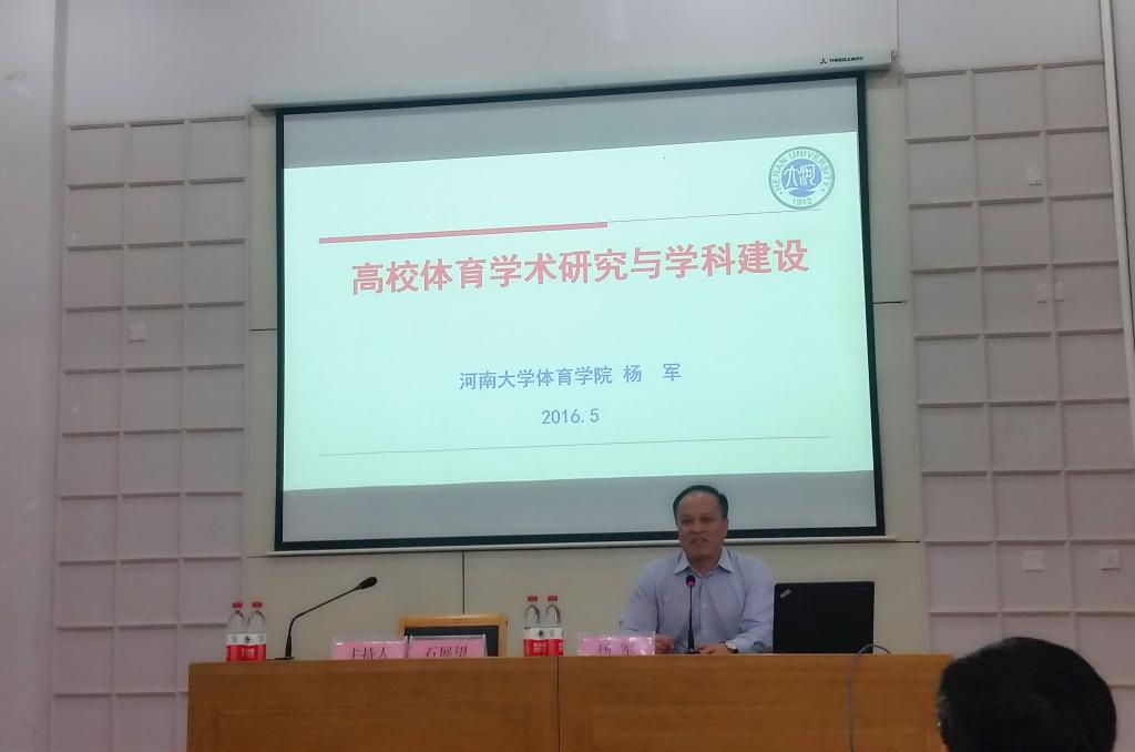 5月20日,河南大学体育学院党委书记、博士生导师杨军教授应邀来校讲学,体育学院全体教师及学生代表200多人聆听了报告。校长助理、体育学院院长石展望教授主持报告会。